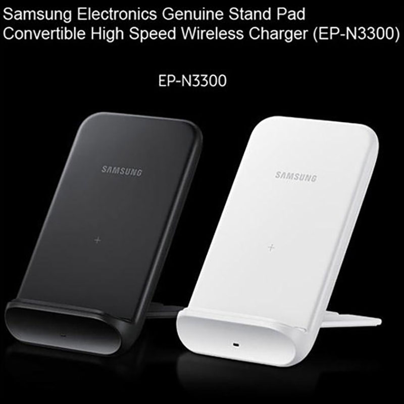شارژ وایرلس گوشی از بهترین نحوه های شارژ و از جمله با سرعت ترین آن هاست.به همین دلیل تقریبا تمام کمپانی های طراح و سازنده لوازم جانبی برای راحتی در نحوه شارژ کاربران و هم چنین بالاتر بردن سطح کیفیت شارژ دست به طراحی شارژر های وایرلس زده اند.البته شرط عملکرد شارژر های وایرلس پشتیبانی دستگاه شارژ شونده از نحوه شارژ وایرلس می باشد.البته شارژر وایرلس سامسونگ Samsung EP-N3300TBEGGB 9W به صورت دو منظوره استفاده می شود.پد شارژ وایرلس آن به صورت استند طراحی شده است.بنابراین می توان از آن به عنوان استند هم استفاده کرد.