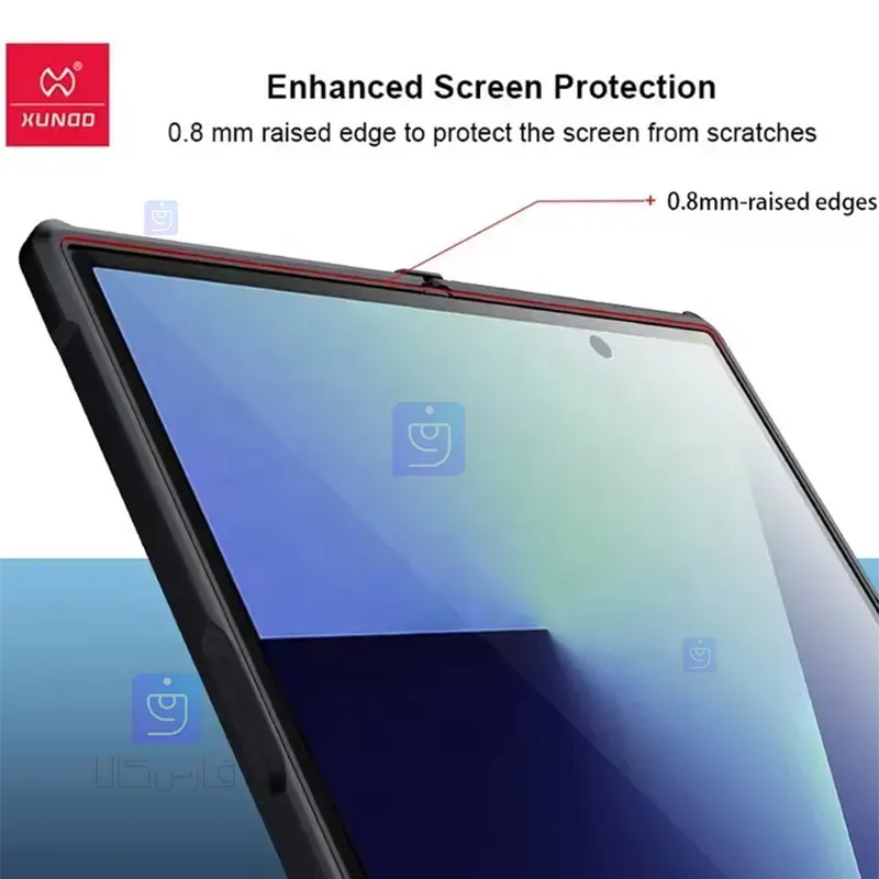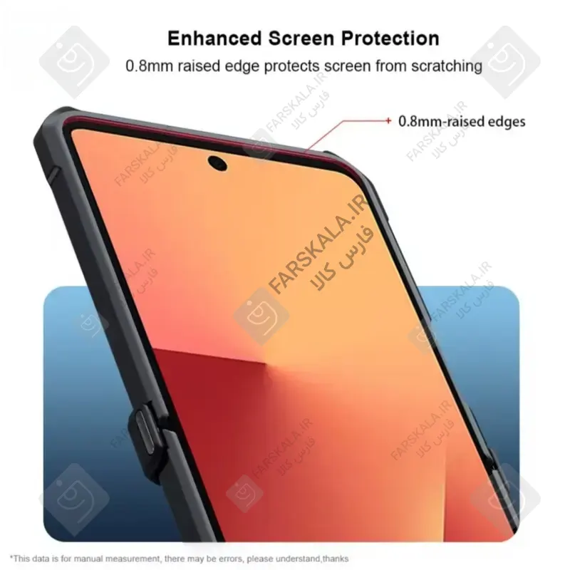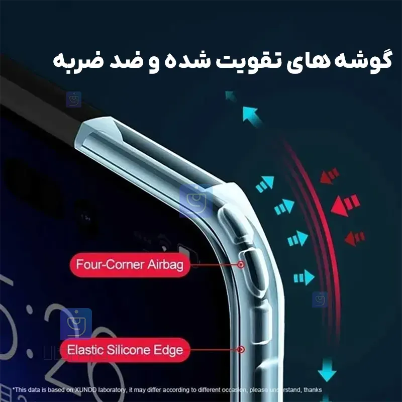 چهار گوشه قاب نسبت به سایر بخش های آن ضخامت بیشتری دارند تا در برابر ضربات سنگین، عملکرد دفاعی بالایی از خود نشان دهد و از ورود آسیب های جدی به گوشی جلوگیری کند.