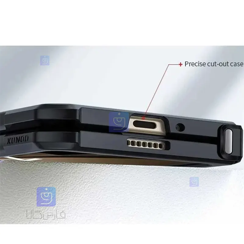 قسمت پورت شارژ و اسپیکر در این محصول با استفاده از شیار های دقیق برش خورده اند تا در زمان استفاده از این قاب دچار محدودیت نشوید همچنین روی کلید های افزایش / کاهش صدا با استفاده از روکشی برجسته پوشیده شده است تا دکمه های گوشی در استفاده بلند مدت در برابر ایجاد خط، خش و ضربه محافظت شوند .