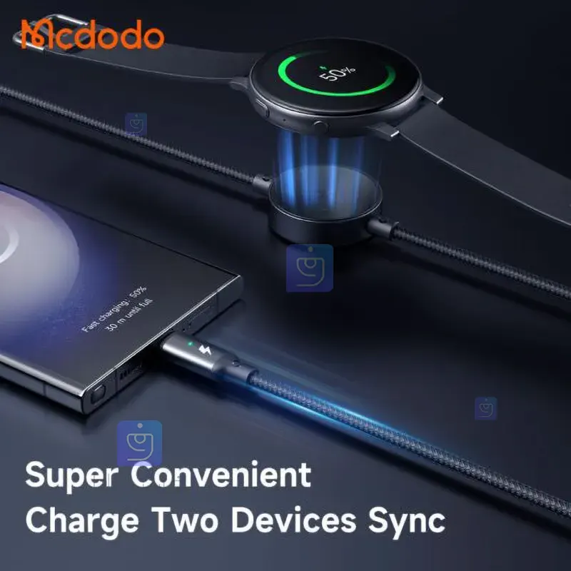 کابل شارژ دوکاره مکدودو مدل CA-4170 یک کابل حرفهای با طراحی پیشرفته برای شارژ همزمان موبایلهای Type-C و ساعتهای Samsung Watch است.