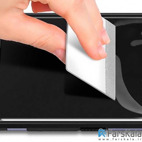 زمانی که گلس را روی سطح کاملا مرطوب نمایشگر قرار میدهید باید با استفاده از کارتک داخل بسته محصول تمامی قطرات و هوای زیر گلس را خارج کنید تا به صورت کاملا خوب و بدون هیچ حباب یا قطره ای در حالت استفاده قرار گیرد.