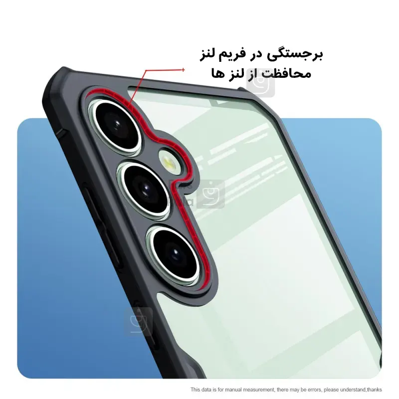 این قاب ضد ضربه به طور کامل دور تا دور دوربین پشتی گوشی را پوشش میدهد و فقط قسمت های لنز مطابق با دوربین پشتی گوشی برش خورده اند تا از لنز گوشی در برابر ضربه و خط و خش محافظت شود .
